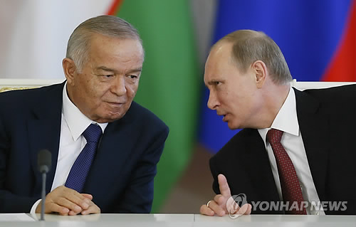 | △ 이슬람 카리모프 우즈베키스탄 대통령(왼쪽)과 블라디미르 푸틴 러시아 대통령 (연합뉴스 DB). |
