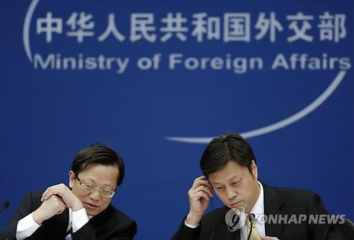 | △ (AP=연합뉴스) 쉬훙 중국 외교부 조약법률사 사장(왼쪽)이 26일(현지시간) 베이징에서 기자회견을 하고 있다. 쉬 사장은 이날 캐나다와 미국 등 서구 국가들이 중국의 사법 체계에 대한 편견 때문에 중국과 범죄인인도조약 체결을 거부하고 있어 국외도피 경제 사범을 체포하는 데 어려움을 겪는다며 이들 국가에 협력을 촉구했다. |