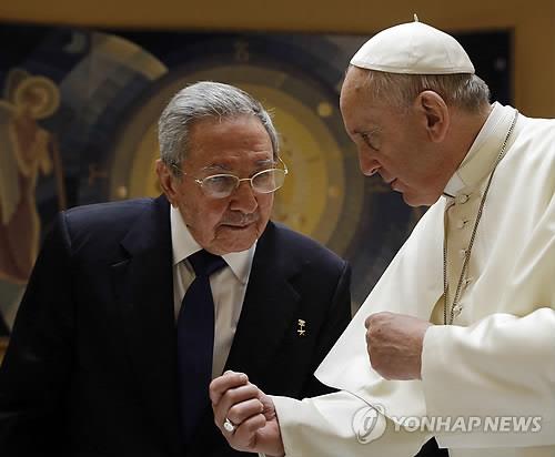 (제네바=연합뉴스) 류현성 특파원 = 라울 카스트로 쿠바 국가평의회 의장이 10일(현지시간) 바티칸을 방문해 프란치스코 교황을 만난 후 "교황에게 깊은 감명을 받아 가톨릭 신자로 돌아가는 것을 고려하고 있다"고 밝혔다.