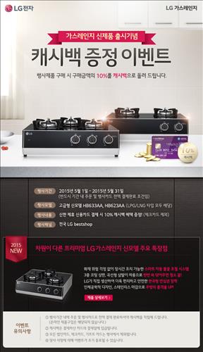 LG전자, 가스레인지 제품 구매시 10% 캐시백 이벤트