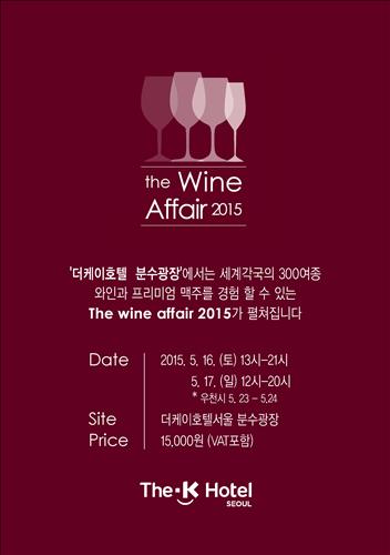 (서울=연합뉴스) 전준상 기자 = 서울 서초구 양재동에 있는 더케이호텔서울은 16일과 17일 분수광장에서 300여종의 세계 우수 와인과 프리미엄 맥주를 경험할 수 있는 '더 와인 어페어 2015'를 개최한다.