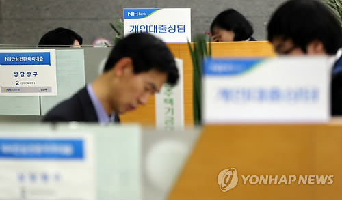 | △ 안심전환대출 2차 판매 마지막 날 (서울=연합뉴스) 홍해인 기자 = 안심전환대출 2차 판매 마지막 날인 3일 서울 충정로1가 NH농협은행 본점 영업부에서 고객들이 안심전환대출 상담 및 신청을 하고 있다. 2015.4.3 hihong@yna.co.kr |