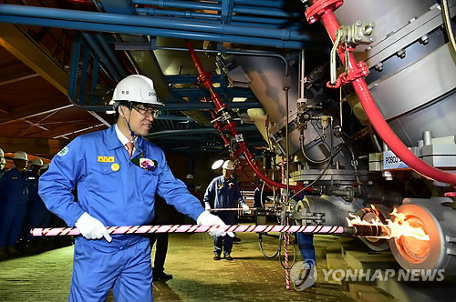 (서울=연합뉴스) 이웅 기자 = 노후 설비를 개선하기 위해 불을 껐던 포스코[005490] 포항제철소의 제2고로가 3차 개수(改修)를 마치고 12일 재가동에 들어갔다.