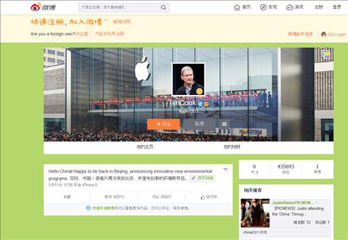 영국 일간 텔레그래프는 쿡의 웨이보 가입에 관한 기사에서 "애플이 지난 2013년 12월 세계 최대 이동통신사인 차이나모바일과 (아이폰 공급) 계약을 한 이후 애플 입장에서 중국은 점점 더 수익성이 좋아지고 있는 시장"이라고 분석했다.