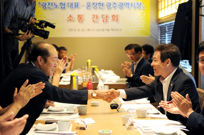 [부자동네타임즈 손권일 기자] 윤장현 광주광역시 시장은 20일 오전 빛가람혁신도시를 방문해 광주 · 전남 공동혁신도시 노동조합협의회 간부 14명과 간담회를 열고 이주 직원들의 애로사항에 대해 의견을 나눴다.