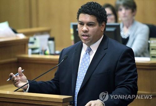 | △ 미국 위스콘신 주 데인 카운티의 이스마엘 오잔 검사가 12일(현지시간) 기자회견을 열고 지난 3월 비무장 흑인 청년 토니 로빈슨을 총격 살해한 백인 경관 맷 케니에 대해 불기소 결정을 내렸다고 밝혔다. (AP=연합뉴스) |