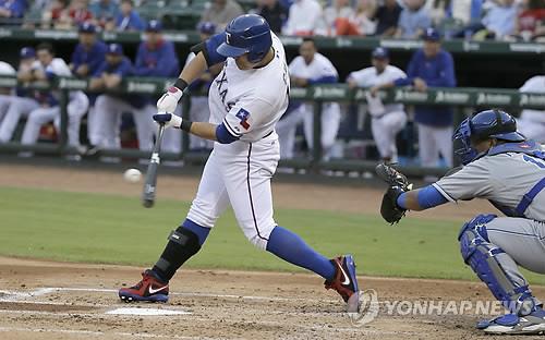 추신수는 12일(현지시간) 미국 텍사스 주 알링턴의 글로브 라이프 파크에서 벌어진 미국프로야구 캔자스시티 로열스와의 홈경기에서 1번 타자 우익수로 출전해 1회 선두 타자 홈런을 터뜨렸다.