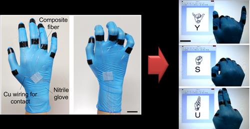 연구진은 이어 이 스마트 변형 센서를 장갑의 손가락 부위에 부착, 수화 인식용 스마트장갑을 제작한 다음 센서로 측정한 손가락의 움직임을 통해 영어 알파벳을 표현하는 수화동작을 인식하는 데 성공했다.