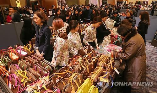 | △ 지난 2월 서울 소공동 롯데호텔에서 롯데백화점 주최로 열린 해외명품대전에서 소비자들이 제품을 고르는 모습. |