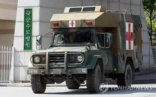 | △ 삼엄한 국군수도병원 앞 (성남=연합뉴스) 박동주 기자 = 서울 내곡동 육군 예비군훈련장 내 총기난사 사건으로 5명의 사상자가 발생한 13일 부상자 1명이 옮겨진 경기도 성남 국군수도병원 앞에서 군 차량이 오가고 있다. 이날 부상자들은 국군수도병원, 삼성의료원, 강남세브란스병원 등으로 옮겨졌다. 2015.5.13 pdj6635@yna.co.kr |