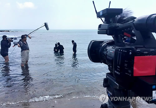 | △ (서귀포=연합뉴스) 중국 랴오닝성(遼寧) 선양(沈陽)방송의 예능 프로그램 '쩌우무추파'(주말출발) 제작팀이 13일 제주 서귀포시 성산일출봉 부근 해변에서 제주해녀를 다루는 특집 프로그램을 촬영하고 있다. 제주해녀 특집 프로그램은 오는 29일·6월 5일·12일 3회분의 본 방송과 6회의 재방송으로 방영된다. 2015.05.13. <<제주관광공사 제공>> koss@yna.co.kr |