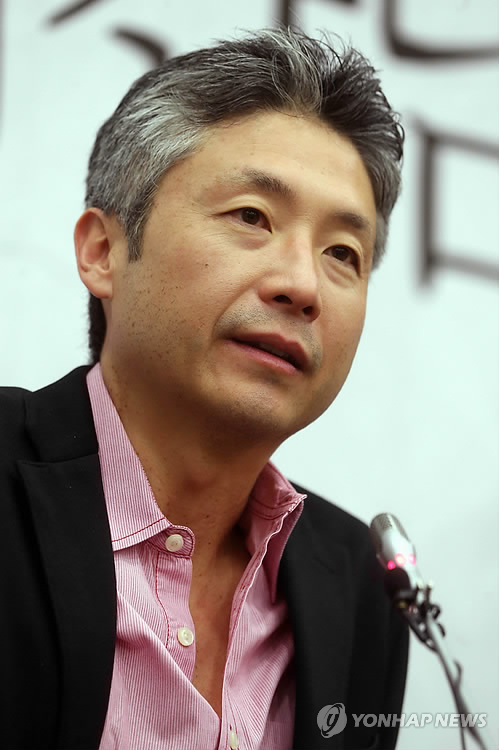 | △ 답하는 이창래 작가 (서울=연합뉴스) 김수진 기자 = 한국계 미국인 작가 소설가 이창래가 13일 오후 서울 세종문화회관 예인홀에서 열린 이창래 작가 데뷔 20주년 기념판 '영원한 이방인' 출판 기자간담회에서 질문에 답하고 있다. 2015.5.13 ksujin@yna.co.kr |