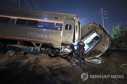 (워싱턴·뉴욕·서울=연합뉴스) 이강원 신지홍 특파원 강건택 고미혜 기자 = 미국 필라델피아에서 12일 밤(현지시간) 238명의 승객을 태운 워싱턴발 뉴욕행 열차가 탈선 후 전복돼 최소 7명이 숨지고, 135명가량이 다쳤다.