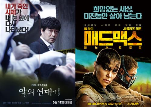 '악의 연대기'와 '매드 맥스-분노의 도로'가 한국영화 대 외화 대결구도를 형성하고 있다.