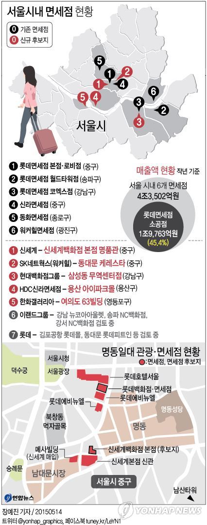 14일 업계에 따르면 롯데면세점 소공점의 지난해 매출은 1조9천763억원으로 서울 시내 6개 면세점의 지난해 총매출액인 4조3천502억원의 45.4%를 차지했다.