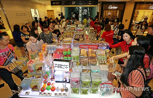| △ 신라면세점 제주점에 몰린 중국인 관광객들. (연합뉴스 자료사진) |