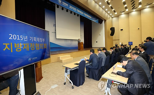 기재부는 15일 정부 세종컨벤션센터에서 '2015년 시·도 지방재정협의회'를 열어 어려운 재정 여건을 감안할 때 재정 개혁이 필요한 만큼 지자체들이 정부 정책에 협조해 달라고 당부했다.