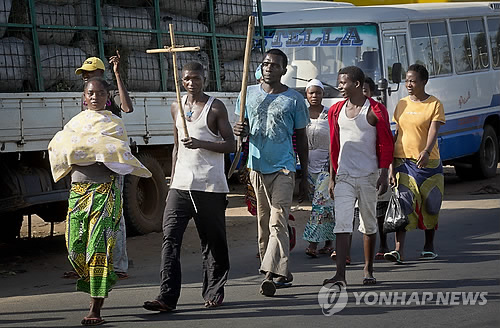 | △ 부룬디 정국 혼미 (부줌부라 AP=연합뉴스) 14일(현지시간) 수도 부줌부라에서 시민들이 '불편부당'의 표징으로 십자가를 들고 거리를 걷고 있다. |