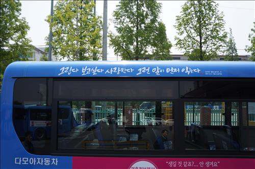 시내버스에 적히는 문구는 저작권이 확보되거나 자체 보유한 시 작품 중에서 골랐다. 또 사단법인 한국캘리그라피협회와 협의해 캘리그라피로 시 문구를 적었다.