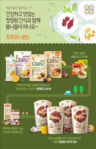(서울=연합뉴스) 인교준 기자 = 대상㈜은 이달 31일까지 통합 온라인몰 정원e샵(www.jungoneshop.com)을 통해 청정원의 인기 간식을 최대 50%까지 할인 판매하는 '청정원 봄나들이 간식 기획전'을 한다고 18일 밝혔다.