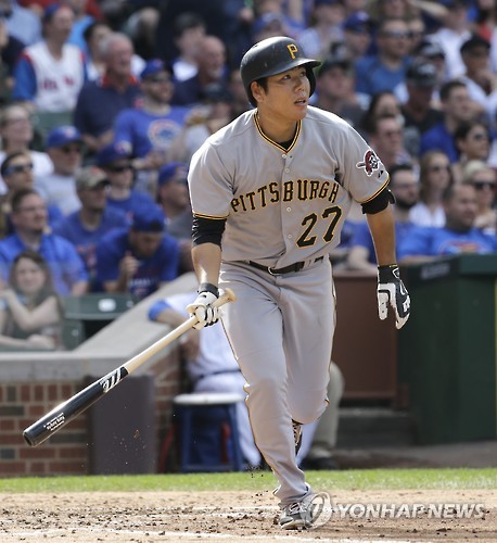 강정호는 이날 미국 일리노이주 시카고의 리글리필드에서 벌어진 시카고 컵스와의 방문경기에서 5번 타자 유격수로 선발 출전해 3타수 1안타를 치고 볼넷 1개를 기록했다. 강정호는 머서를 제치고 최근 6경기에서 네 차례나 유격수로 선발 출전 기회를 얻었다.