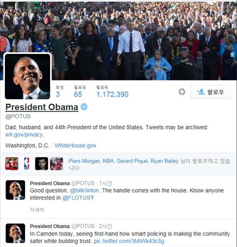 오바마 개인트위터 @POTUS 시작…단숨에 117만 팔로워(종합2보)
