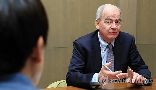 | △ 존 엘킹턴 볼란스 창립자 겸 의장 인터뷰 (서울=연합뉴스) 홍해인 기자 = '기업의 사회적 책임'(CSR)과 '지속가능한 발전'에 관한 세계적 권위자로 컨설턴트업체 볼란스의 창립자 겸 의장인 존 엘킹턴이 18일 오후 서울 여의도 한 호텔에서 '유엔글로벌콤팩트(UNGC) 코리아 지도자 정상회의'를 앞두고 연합뉴스와 인터뷰하고 있다. |