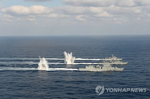 (서울=연합뉴스) 김귀근 기자 = 해군은 19일 동해 죽변 동방 해상에서 전비태세 향상을 비롯한 북한의 해상 도발의지 분쇄를 위한 전술훈련과 함대함 유도탄 실사격 훈련을 했다고 밝혔다.