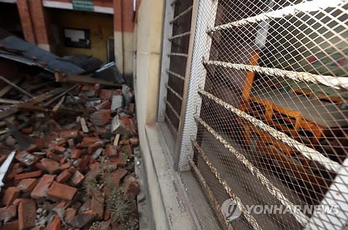 | △ (카트만두<네팔>=연합뉴스) 신준희 기자 = 2일 오전(현지시간) 네팔 카트만두 박타푸르의 한 학교가 지진으로 무녀져 있다. 2015.5.2 hama@yna.co.kr |
