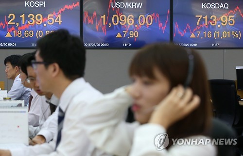| △ 코스피, 2,140선 육박 (서울=연합뉴스) 한종찬 기자 = 코스피가 20일 해외에서 불어온 훈풍에 3거래일 연속 상승 마감했다. 사진은 이날 오후 서울 중구 외환은행 본점 딜링룸. |