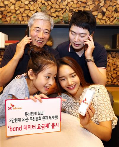 (서울=연합뉴스) 한지훈 기자 = SK텔레콤[017670]은 월 2만원대 요금부터 유·무선 음성 통화와 문자를 무제한 제공하는 '밴드 데이터 요금제' 가입자가 출시 첫날 15만명을 돌파했다고 21일 밝혔다.