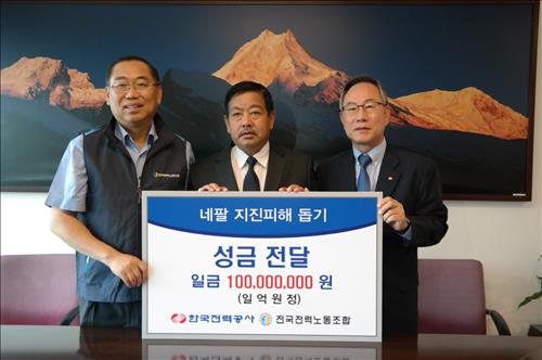 이번 성금은 두 차례 대지진으로 국가적 재난을 겪고 있는 네팔의 조속한 피해 복구와 긴급 구호를 위해 한전 노사 임직원 2만여명이 모금한 것이라고 한전은 설명했다.