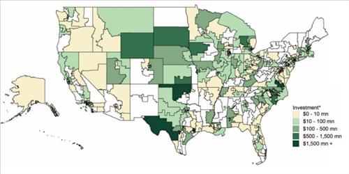 투자액과 고용인을 기준으로, 중국 기업들의 누적 투자액 최고 15위 안에 드는 지역구 가운데 하원 공화당 지도부 5인의 지역구는 들어있지 않고, 하원 민주당 지도부 4인중 한명인 낸시 펠로시 원내대표의 선거구 한개만 포함돼 있다. 핵심 정치인들의 지역구와 중국기업의 투자 동향간 상관관계가 없는 셈이다.