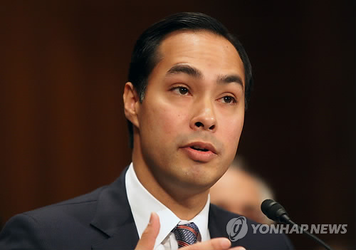 | △ (AP=연합뉴스) 훌리안 카스트로 미국 주택도시개발부 장관. 히스패닉계인 카스트로 장관은 2016년 미 대통령 선거의 유력한 민주당 부통령 후보이자 '차차기' 대권 주자로 거론되고 있다. (AP Photo/Lauren Victoria Burke, File) |