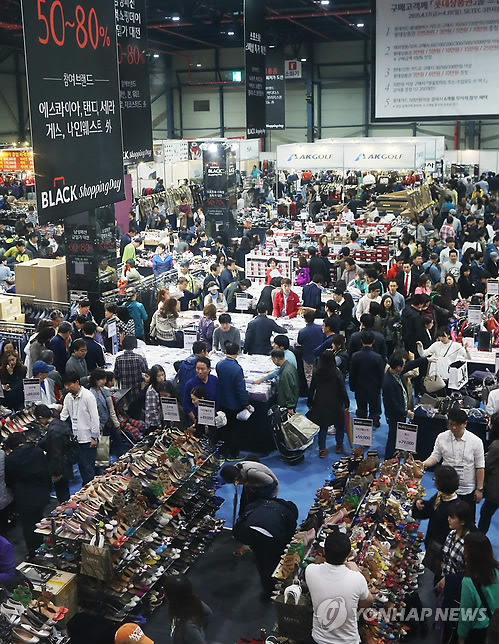 | △ 지난달 19일 오후 서울 강남구 대치동 세텍에서 열린 '롯데백화점 블랙쇼핑데이'를 찾은 많은 고객들이 다양한 제품을 살펴보고 있다. (서울=연합뉴스) 자료사진. |