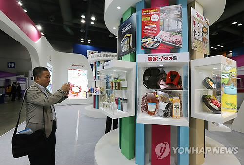 | △ 최근 수출 침체 속에서도 한류와 관련된 소비재 수출은 견고하게 증가하는 것으로 나타났다. 사진은 지난달 경기도 고양시 킨텍스에서 열린 '한중 FTA 비즈니스 플라자'에서 중국 바이어가 한국 음식 모형을 촬영하고 있다. |