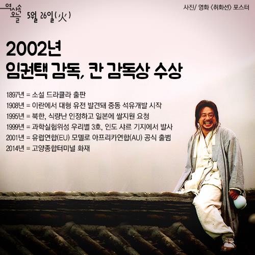 한가지는 축구 대표팀이 세계 1위 프랑스 대표팀과 평가전에서 대등한 경기 끝에 2-3으로 아깝게 졌다는 것이고, 또 하나는 임권택 감독이 26일 오후(한국시간 27일 새벽) 제55회 칸 영화제 폐막식에서 19세기 화가 오원 장승업(1843∼1897)의 일생을 그린 영화 '취화선'으로 감독상을 받았다는 것이었다. 축구 평가전 소식이 '월드컵 16강 진출'의 희망을 키웠다면, 칸 영화제 소식은 한국 영화가 칸영화제 장편 경쟁 부문에서 처음으로 상을 받았다는 걸 의미했다.