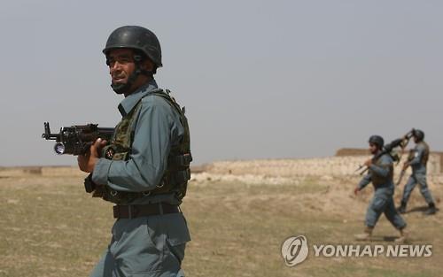 | △ 22일 아프간 북부 쿤두즈 외곽에서 아프간 경찰이 순찰하고 있다.(AP=연합뉴스) |