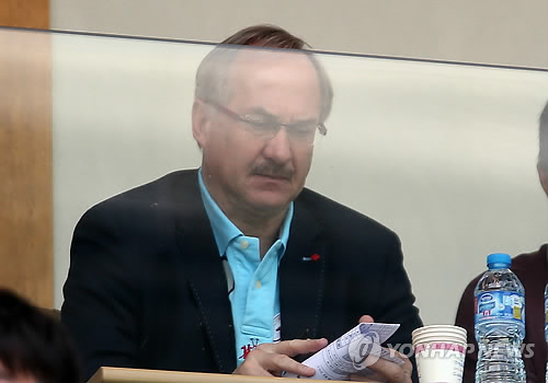 | △ 문수축구장 찾은 슈틸리케 축구 국가대표팀 감독 (울산=연합뉴스) 김용태 기자 = 10일 울산 문수축구경기장에서 열린 2015 K리그 클래식 울산 현대와 전북 현대의 경기. 슈틸리케 축구 국가대표팀 감독이 관중석에서 경기를 지켜보고 있다. 2015.5.10 yongtae@yna.co.kr |