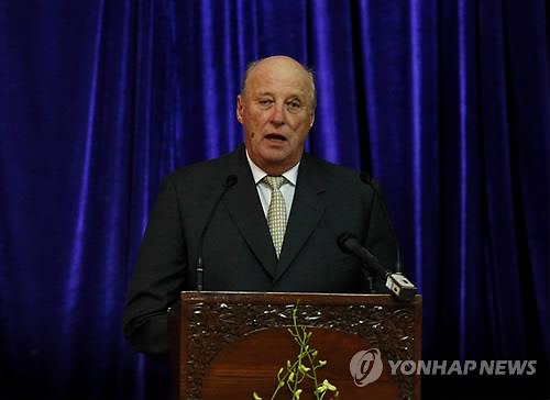 (앵커리지<미국 알래스카> AP=연합뉴스) 노르웨이 국왕 하랄트 5세(78)가 27일(현지시간) 미국 알래스카 앵커리지에서 석유시추 관련 회의를 열고 북극 자원개발에 대한 의지를 드러냈다.