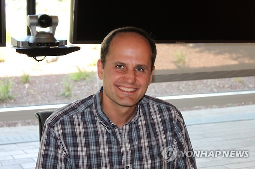 | △ 구글 인사책임자 라즐로 복 선임부사장 (마운틴뷰<미국 캘리포니아주>=연합뉴스) 임화섭 특파원 = 구글의 인사책임자인 라즐로 복 선임부사장이 27일(현지시간) 구글 본사 사옥에서 기자들을 만나 이 회사의 인재 관리 시스템을 설명하고 있다. |