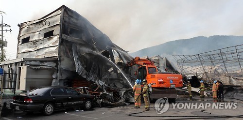 건물 4동 2천640㎡ 전소, 공장장 실종·소방관 2명 감전사고