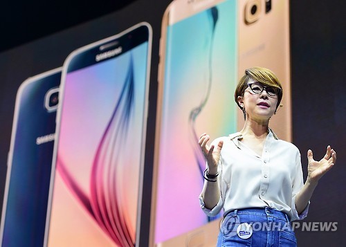 | △ 도전 스토리 소개하는 이영희 부사장 (서울=연합뉴스) 이영희 삼성전자 무선사업부 마케팅팀장이(부사장)이 28일 서울 중구 장충체육관에서 열린 삼성 토크 콘서트 '열정樂(락)서'의 후속 프로그램 '플레이 더 챌린지'(Play the Challenge)에서 갤럭시 S6 제품 개발과 마케팅에 얽힌 '삼성의 도전 스토리'를 소개하고 있다. (미디컴 제공) |