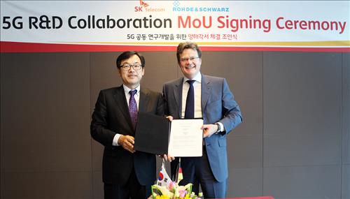 (서울=연합뉴스) 현윤경 기자 = SK텔레콤[017670]은 통신 네트워크 계측장비 업체인 독일 로데슈바르즈와 5세대(5G) 이동통신 핵심 기술 공동 연구개발을 위한 양해각서(MOU)를 체결했다고 29일 밝혔다.
