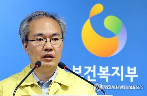| △ 메르스 추가 환자 2명 발생, 브리핑 (세종=연합뉴스) 배재만 기자 = 권준욱 보건복지부 공공보건정책관이 29일 오전 정부세종청사 보건복지부 공용브리핑룸에서 메르스 일일상황점검회의 결과를 브리핑하며 금일 오전 7시 현재 2명의 신규 환자를 확인했다고 밝히고 있다. 현재까지 총 환자 수는 9명이다. |