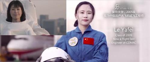 4분50초 분량의 푸단대 영상물('To My Light')에는 한 여성 졸업생이 조종사 복장을 입은 비행시험 엔지니어로 등장해 캠퍼스 곳곳을 돌아다니는 형식으로 대학의 우수한 면모를 소개하다가 비행 헬멧을 벗는 장면이 나온다.