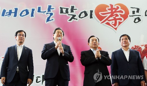 (양주=연합뉴스) 노승혁 기자 = 김무성 새누리당 대표는 29일 "어르신들이 행복하고 신나게 살 수 있는 대한민국을 만들기 위해 새누리당이 열심히 노력하겠다"고 약속했다.