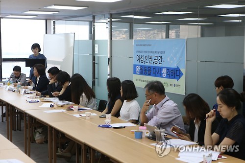 | △ 완월동의 미래는 (부산=연합뉴스) 김선호 기자 = 29일 오후 부산 중구 상지건축 대회의실에서 부산의 대표 집창촌인 '완월동'의 미래를 고민하는 토론회가 열리고 있다. 2015.5.29 wink@yna.co.kr |