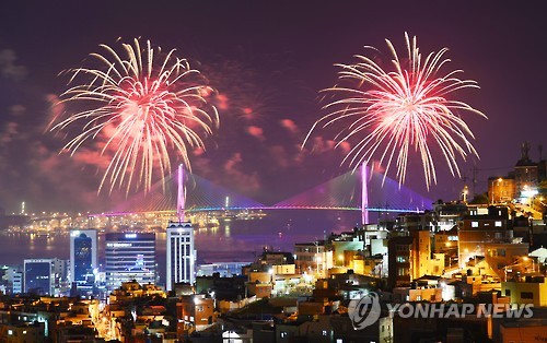 | △ (부산=연합뉴스) 차근호 기자 = 29일 오후 부산 부산항대교 일대에서 열린 '부산항 축제 개막식'에서 축제의 밤을 알리는 불꽃이 부산 산복도로 위 밤하늘을 수놓고 있다. 2015.5.29 ready@yna.co.kr |