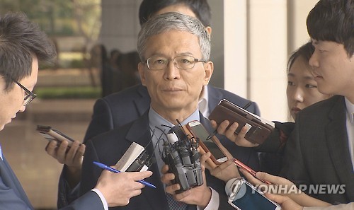 | △ 강영원 전 석유공사 사장 소환 (서울=연합뉴스) 해외 부실 정유사 인수로 1조 원대의 국고 손실을 초래한 혐의를 받는 강영원 전 석유공사 사장이 1일 오전 서울 서초구 서울중앙지검에 출석, 취재진의 질문을 받고 있다. 2015.6.1 << 연합뉴스TV >> photo@yna.co.kr |